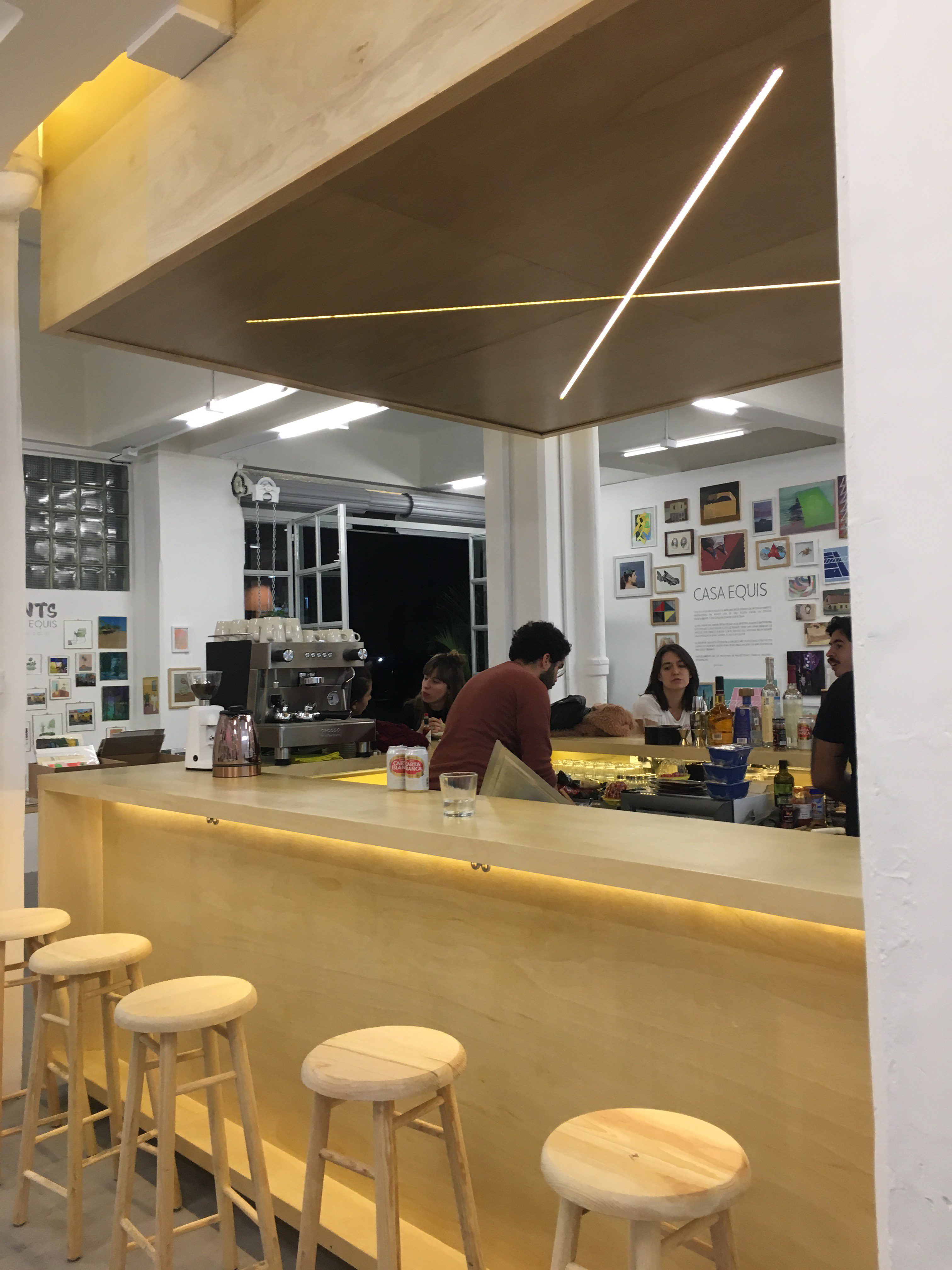 El lugar es fascinante. Carleti está al fondo charlando con un hombre de camisa hawaiiana. En la Barra del café —así es, ahora Casa Equis tiene un pequeño café con un menú sencillo de comida y bebida— me encuentro con Audrey Del Piccolo y Moira (del Teatro Lúcido). Hablamos del nuevo espacio. Sonreímos. Nos emociona ver crecer la red en la Santa María. Audrey me cuenta de su más reciente proyecto. Quedamos en ir por un trago y escribir algo para Sílaba de Sal.